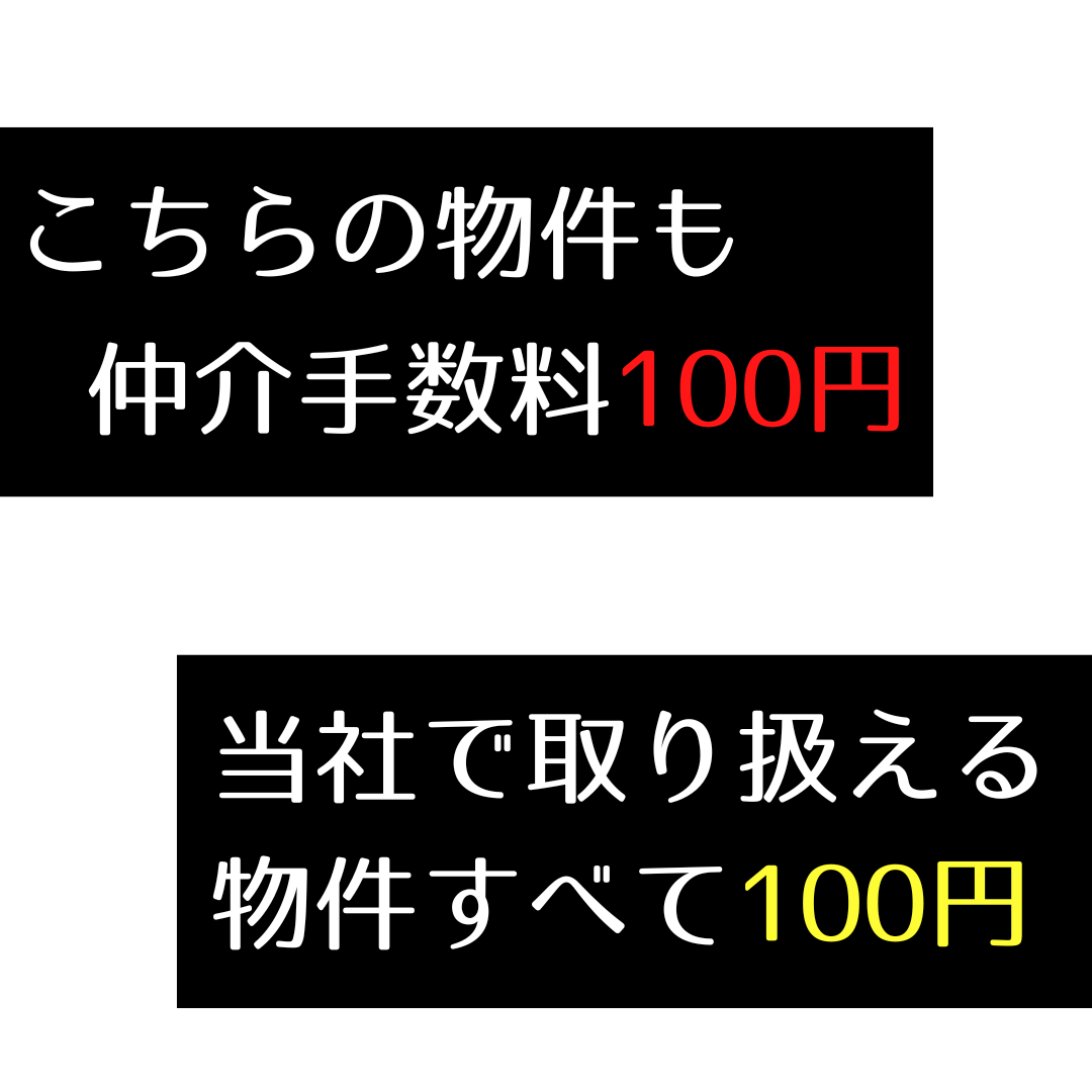 【100円賃貸】こちらの物件は、当社だけ仲介手数料100円(税込み)でどなたでも、いつでもお取引可能です!